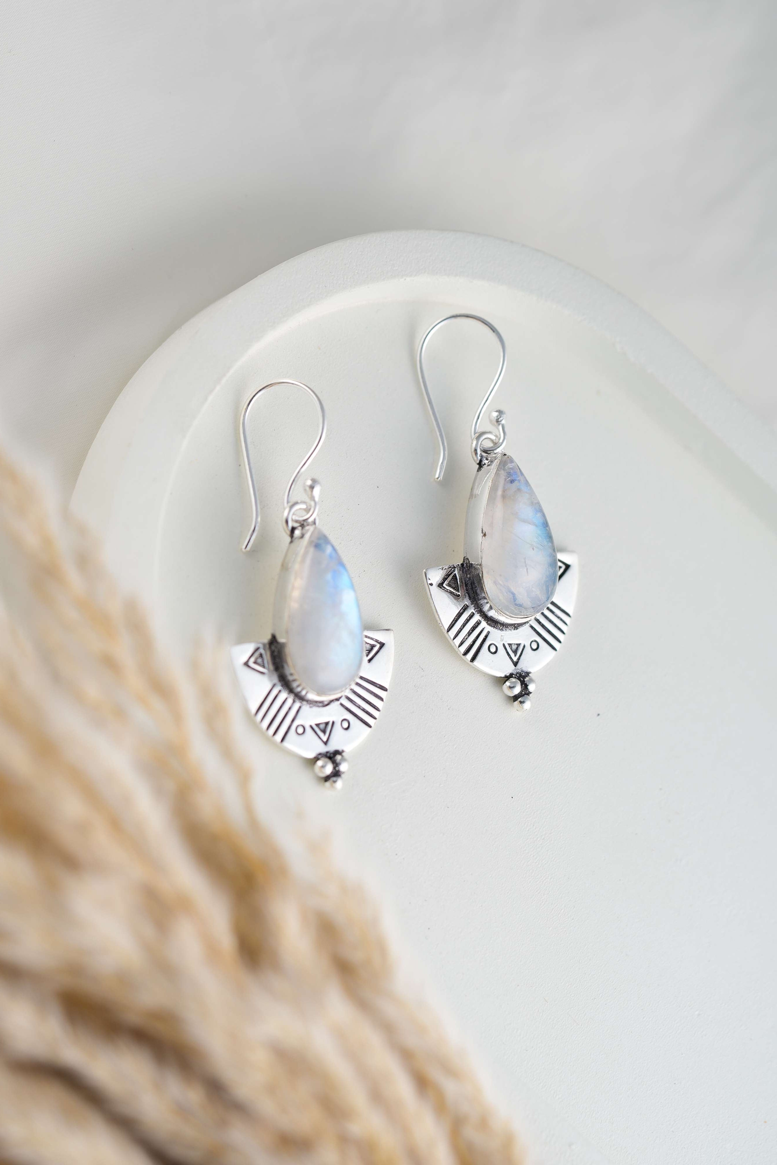 Beautiful Silverplated Brass Earrings with an Egyptian inspired design and a big gemstone.
